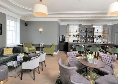 Doors lead through to the elegant Bar, with comfortable seating, a cosy fireplace and a good selection of beverages. There is a further small room on the ground floor ideal as an office space or to make telephone calls.