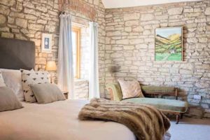 The interiors don’t disappoint either – think contemporary cool combined with divine rustic simplicity, with oodles of space for large groups to celebrate in style without ever feeling crammed in. The high ceilings, exposed stone and original beams are truly beautiful, with cosy clear view log burners and gorgeous flagstone flooring adding to the country style. French doors in the lounge open out on sunny days to let the countryside in, with the sweet sound of birdsong filtering through the breeze.